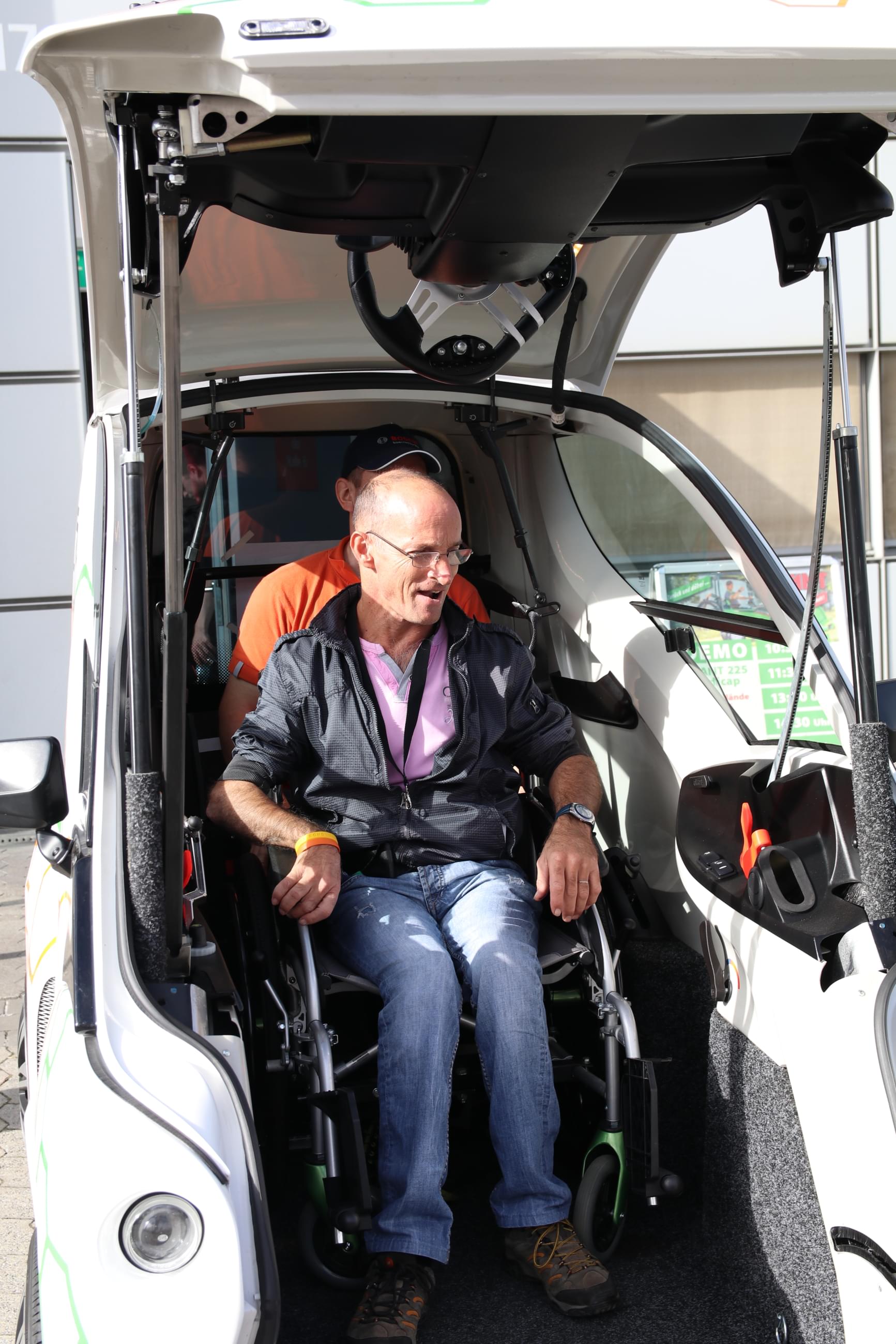 Rok 2014 byl pro nás velmi důležitý – prodali jsme první vozidla Elbee třem vybraným vozíčkářům, abychom získali reálnou zpětnou vazbu z praxe. Byla mezi nimi i první žena, paní Schmidtová. Na vozíku je většinu svého života po autonehodě, kterou nezavinila. Zlom u ní nastal v roce 2013, kdy kvůli zhoršujícímu se stavu řídnutí kostí přestala být schopna přesedat do auta. Skoro rok se proto nedostala například k zubaři i přes to, že to potřebovala.